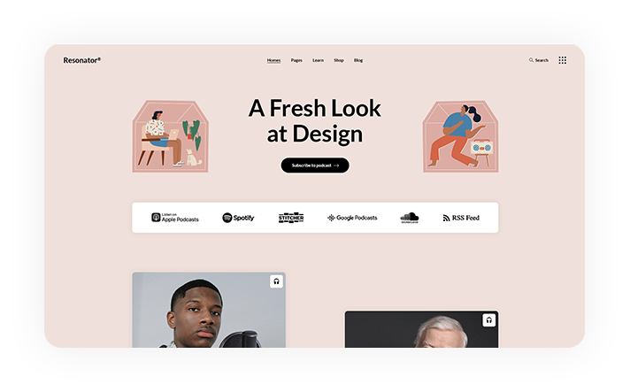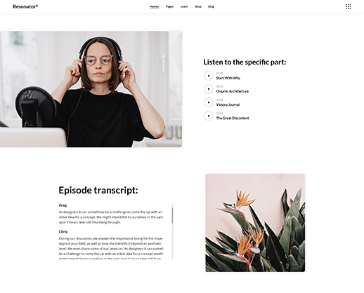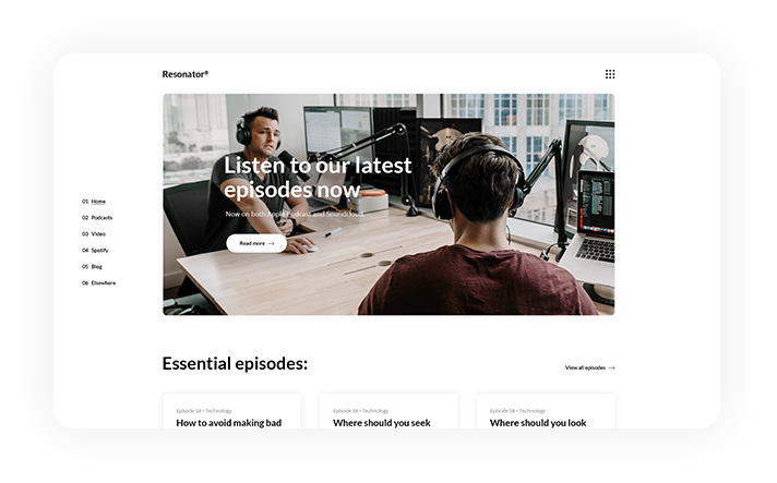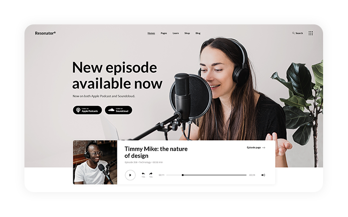 Listeners can easily play your podcast using Resonator’s flexible podcast player. Podcast Player