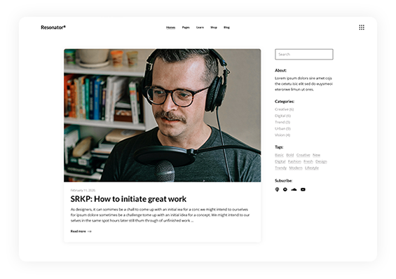 Resonator includes a terrific collection of customizable blog templates, allowing you to keep your audience up to date with your latest projects and ideas.