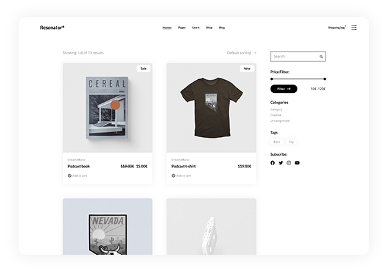 The theme comes with an assortment of practical shop layouts you can use to easily set up your shop. It is also fully compatible with the WooCommerce plugin.
